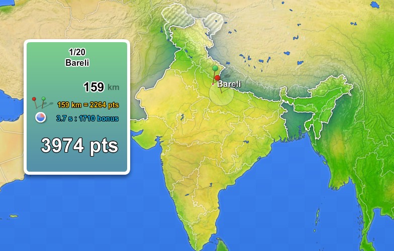 Il est certain que tu peux aussi te prendre pour le méchant monstre de l’Himalaya et exploser les cars de touristes delhiites en week-end ou les voitures de honeymooners venus accomplir ici leur devoir (conjugal cette fois), ou bien réviser ta géographie du pays. Et pour le coup, ce dernier jeu est assez chouette (oui, je sais placer Bareli (Bareilly) sur une carte : je suis comme ça moi…).