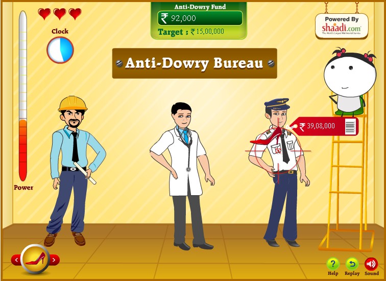 L’étape finale, avant de convoler en justes noces et de concevoir, sera de s’occuper de la dot. Oui, toujours d’actualité en Inde et même largement, le biennommé Angry Brides donne la part belle à la promise, enragée que le promis et sa belle-famille demandent entre 15 lakhs (le cours actuel de l’ouvrier sur le marché du mariage) à 35 lakhs (pour le fonctionnaire). Le pauvre petit beta*-à-marier se prend une multitudes de projectiles en pleine figure, et c’est une bonne chose : déchaînez-vous mesdames, il y a encore du boulot en la matière…